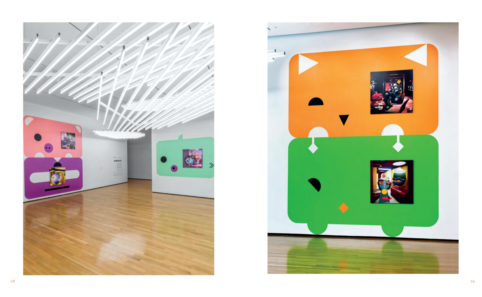 and recreated by the artist in her exhibition at the Moderno. Following the visual principles proposed by the artist in the exhibition, the book’s design provides an unmediated meeting between image and spectator. It also includes a curatorial text by Carla Barbero and Marcos Krämer, a biography and a fascinating conversation between Minoliti and Nicolás Cuello, a researcher focusing on art practices and sexual politics, in whichthe artist discusses the different theoretical and critical approaches in her work.