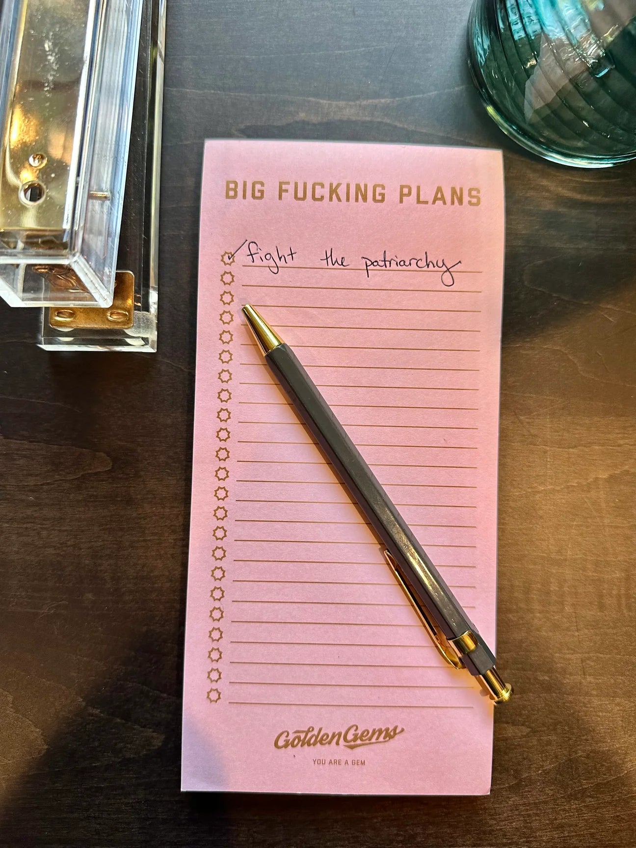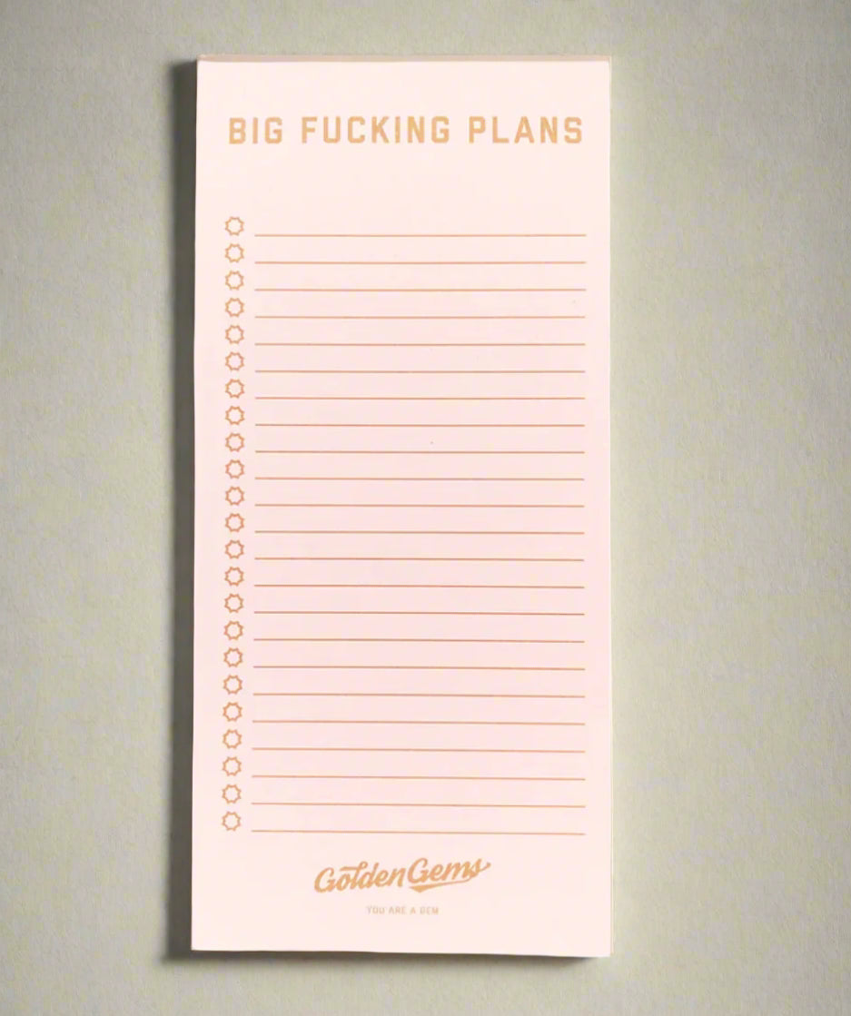 Throw this bad babe on the fridge for your daily reminders, grocery list, to-do lists or just to write love notes to your roomie. Let's get those big fucking plans planned, baddies!