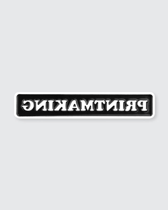 Many printmaking techniques require an artist to deliberately create a flipped image, or mirror image, of their desired composition. During the printing process, this flipped image is then transferred onto paper to reveal the finished form. Our “Printmaking” Pin takes inspiration from this skillful process, showing the work printmaking as a reversed image. Perfectly sized for a shirt pocket or jacket lapel, this pin lets you highlight your artistic know-how, and might even inspire a conversation about your own process.