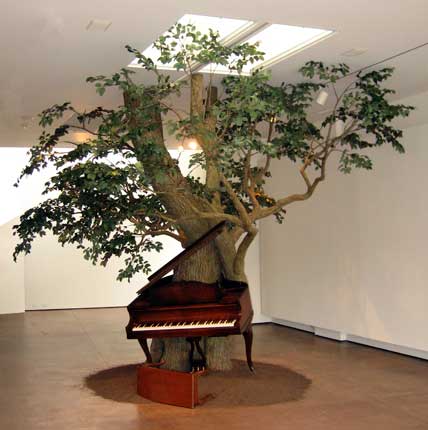 In this focused selection of thirteen pieces, New York–based artist Sanford Biggers challenges and reinterprets symbols and legacies that inform contemporary America. The exhibition is Biggers’ first museum presentation in New York, and it will also mark the Brooklyn debut of Blossom (2007), a large-scale multimedia installation that incorporates references ranging from lynchings to Buddha’s enlightenment under the bodhi tree. Recently acquired by the Brooklyn Museum, Blossom also alludes to the ideologically tinged landscapes of artists such as Alfred Bierstadt and Frederic Church.