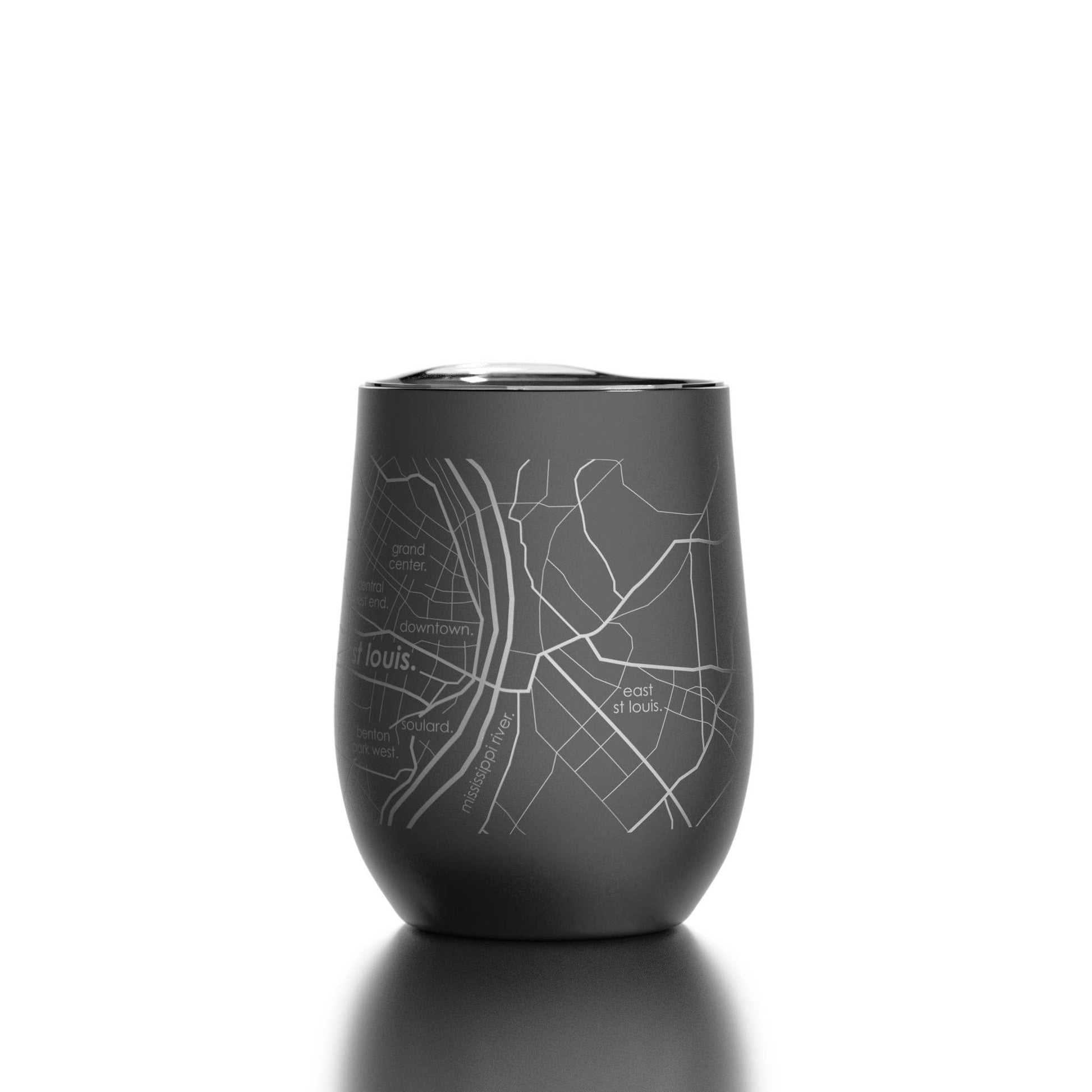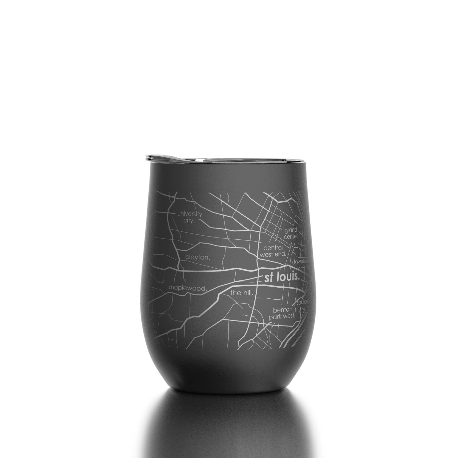 Our Map Drinkware and Glassware collections are available for every U.S. city and town! Stay refreshed and inspired with our engraved St Louis MO Map 12 oz. Insulated Wine Tumbler with lid. Each tumbler is triple-wall vacuum-insulated for maximum temperature retention and comes precision-etched entirely around the vessel with a detailed map of your favorite city’s streets, neighborhoods, and coordinates.