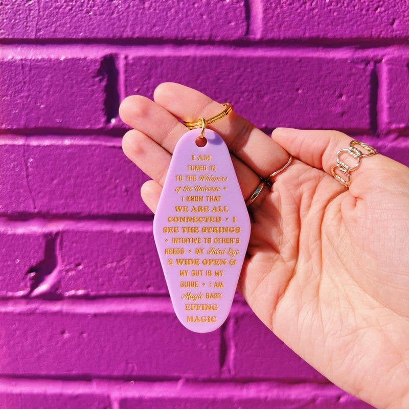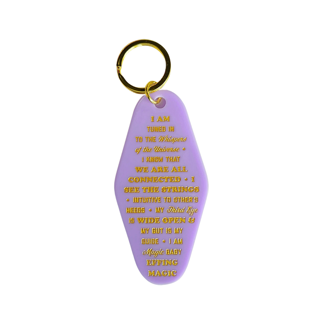 Purple Acrylic Gold Embossed One-Sided 3.5" x 1.75" 1" Gold Keyring